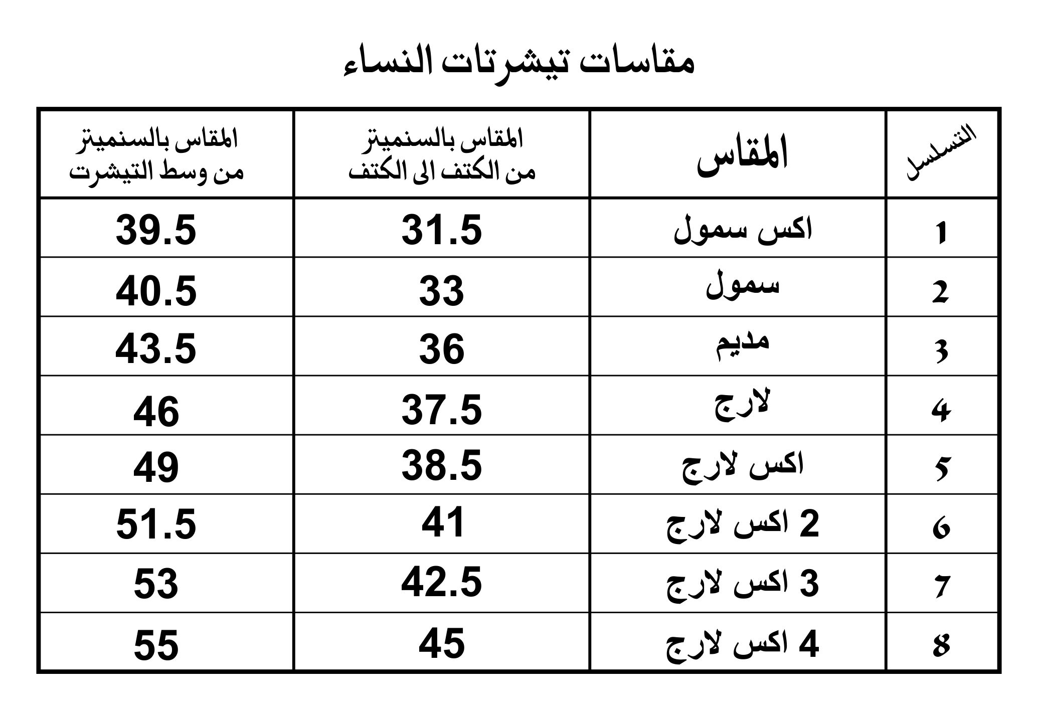 2. المقاسات أروبية